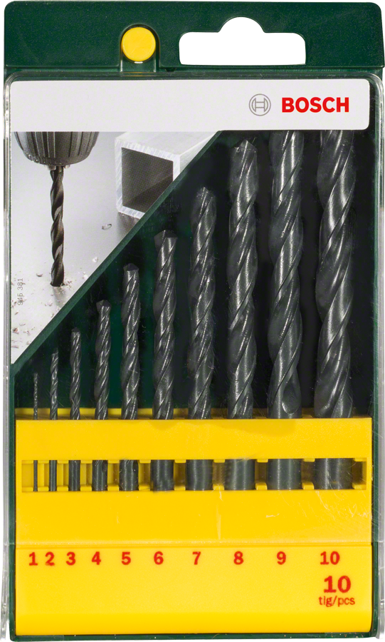 10 spirálových vrtáků z rychlořezné oceli pro vrtačky s ručním vedením i při stacionárním použití.