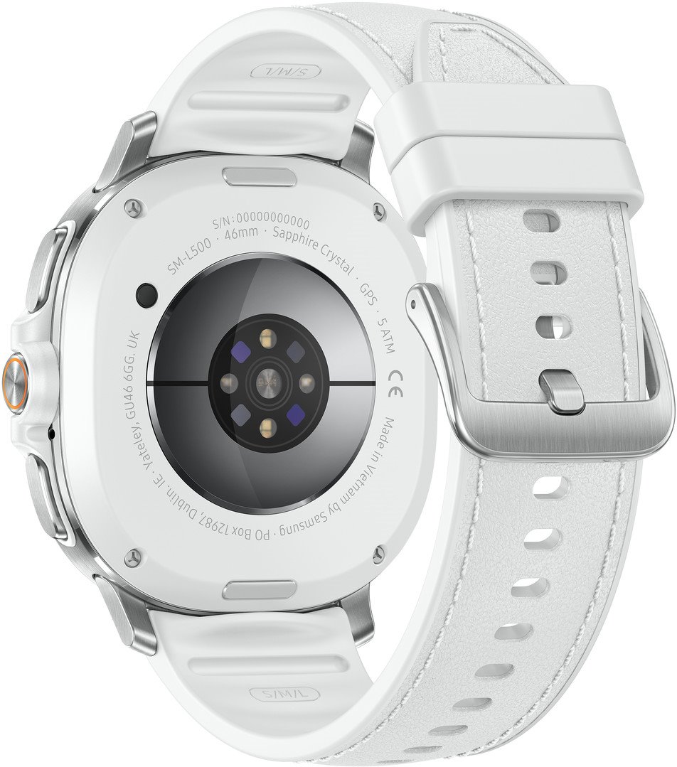 Chytré hodinky 1,34' se safírovým sklíčkem, rozlišení 438x438, 327ppi, 2GB RAM, 64GB interní paměť, procesor Exynos W1000, měření tepové frekvcence, EKG, krevního tlaku, WiFi, BT, GPS, NFC, baterie 445mAh, 5ATM + IP68, LTE.