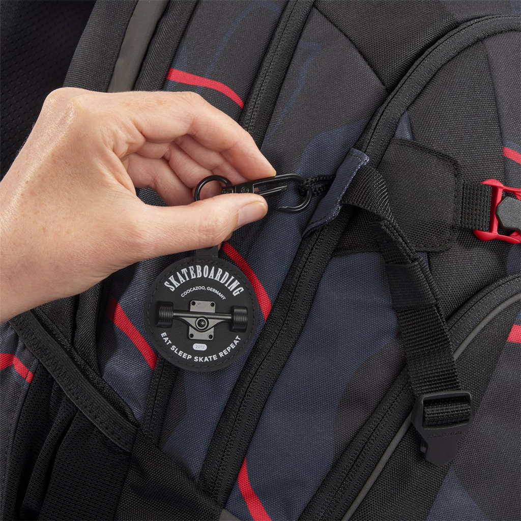 - 2 upevňovací pásky na přední straně batohu pro upevnění např. skateboardu, bundy nebo helmy nebo reflexních pásků
