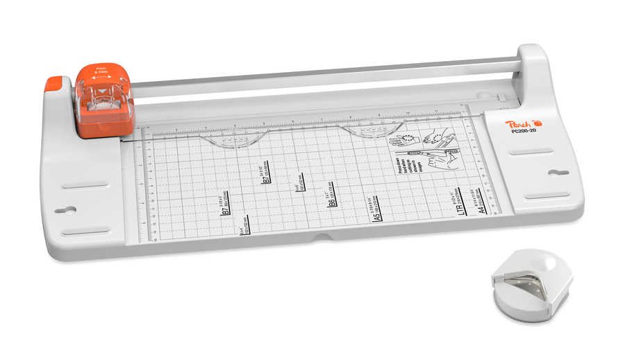 řezačka papírů, kapacita řezu až 10 listů 80g/m2, 4 způsoby řezu: rovný, vlnitý, děrování, rýhování